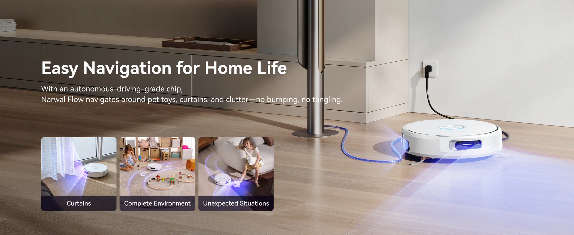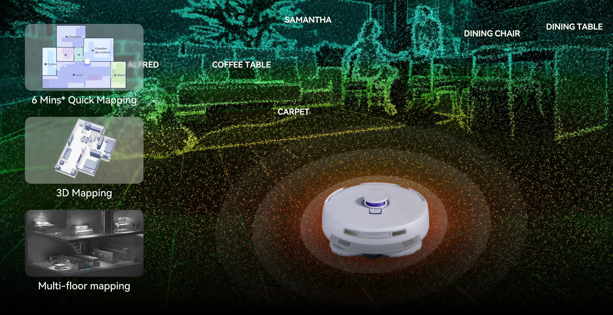 Scans your house and surroundings in full 360° to instantly create a detailed 4-layer 3D map, and plan the most efficient route.