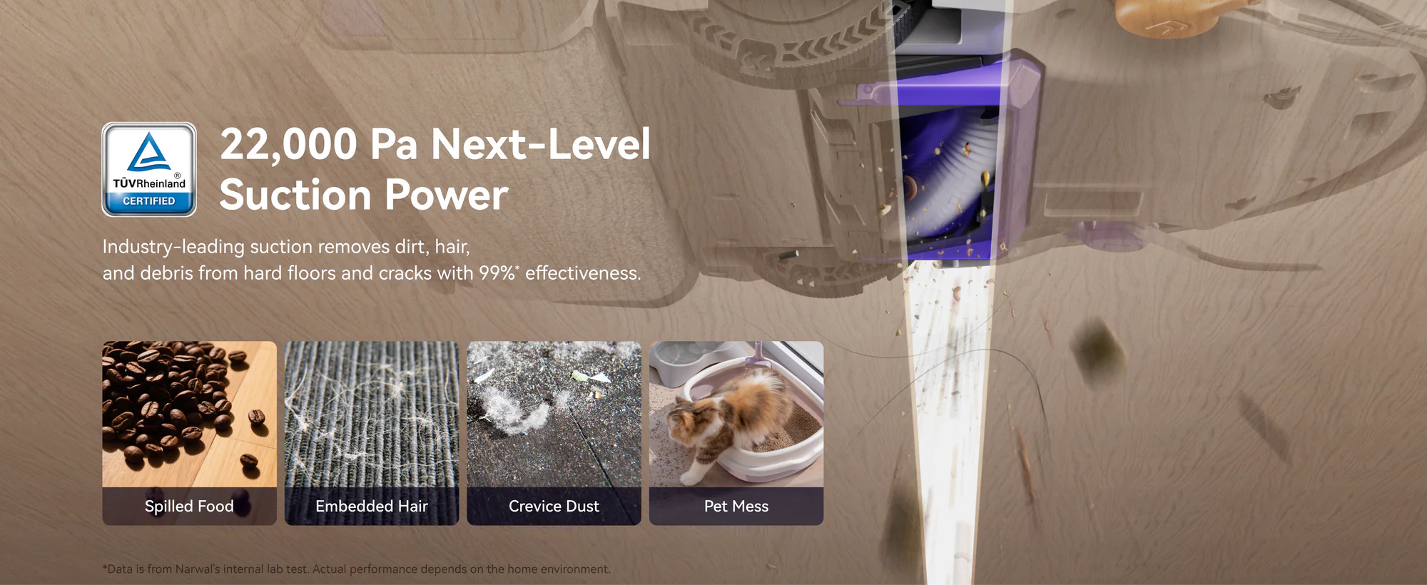 Captures 99%* of particles on hardwood floors, effortlessly removing hair, debris, and hidden dust from crevices and carpets.