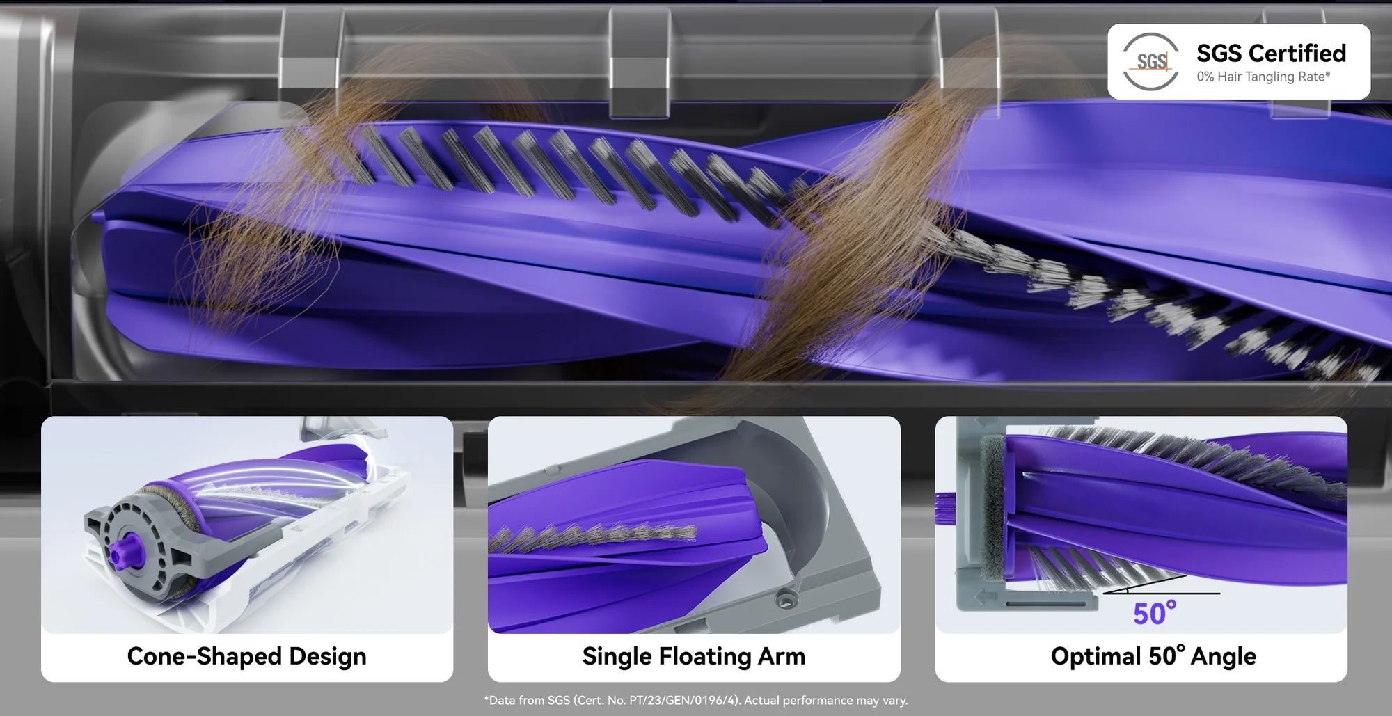 Designed to ensure zero hair tangles across the entire vacuum cleaner.